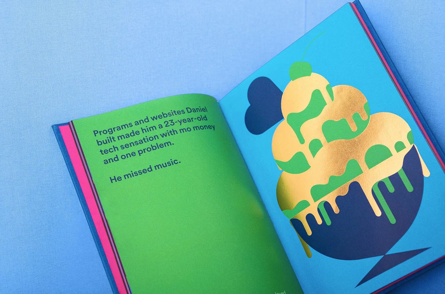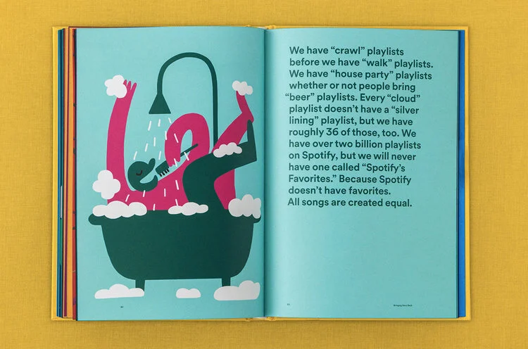 The Book of Spotify tells the story of how a simple idea took over the music industry with original illustrations, a sticker page, those impossible-to-break paper concert wristbands, and a pop-up tennis court.